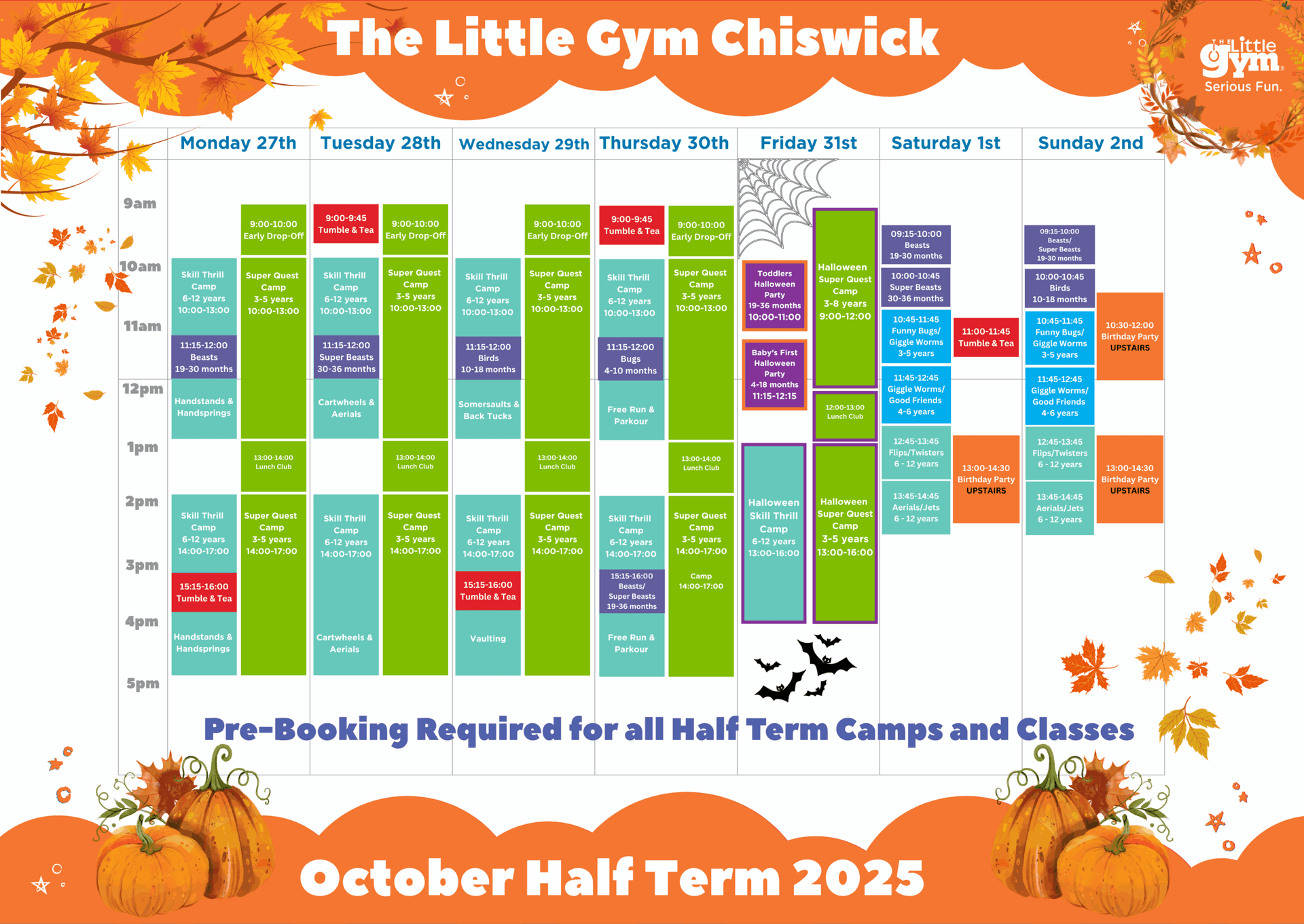 This way, you never miss out on your membership benefits. All classes during the week and over the weekend of our October Half Term MUST be pre-booked.